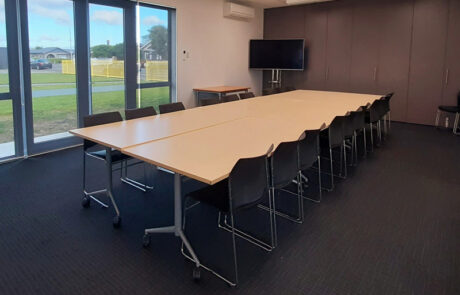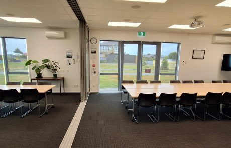 The Pod, located in South Invercargill, is a versatile community space available for bookings by groups and organisations in the community. There are two separate meeting rooms, one is 5m x 5m, the other 9m x 5m. These rooms can also be combined by opening the connecting door to create a spacious single area. Hire includes access to kitchen facilities for tea and coffee, along with amenities such as wifi, a smart TV, a whiteboard, and a projector, making it a perfect venue for meetings, workshops, and events.